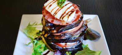 Fresh mozzarella, grilled eggplant, tomatoes and portobellos.